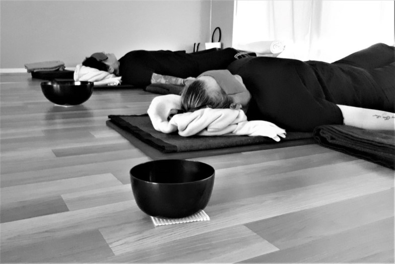 The class ends with a sound bath using Singing Ring® sound bowls during Shavasana. Just 10 minutes of sound-induced stillness deeply relaxes the body and mind, enhancing the effects of your yoga practice.