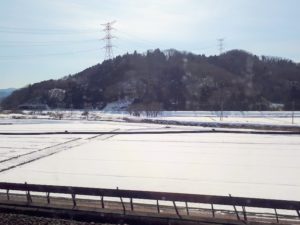 出発の数週間前には東京でも大雪のニュースがあって、寒さに怯えながらの帰国。大阪から東京へ移動する新幹線の車窓からはこんな景色が。
