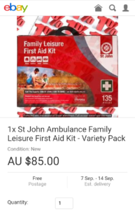 前からあったのか知りませんが、ブリスベンのコストコで First Aid Kit (救急セット)が売られているのを見つけました。