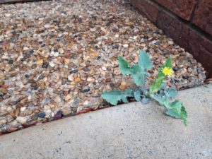 自宅スタジオの入口近くのアスファルトの隙間からたんぽぽ。力強いなぁ。