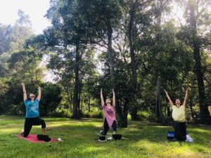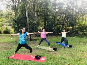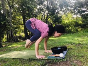 各自リンを鳴らして音を聴きながらアーサナ。自然の中でたっぷりの解放感、とっても気持ち良かったです。3人とも身体が自然に伸びてる~~