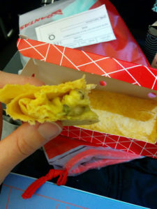 ドーサっぽい感じ。袋の中には他にリンゴ1個が入っていました(カンタスはリンゴ丸ごと一個とかバナナとかよく配りますよね)。
