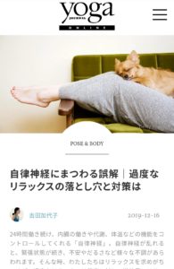 自律神経についての記事をヨガジャーナルオンラインで書きました。年末年始の休暇の際はお気をつけください 🙂